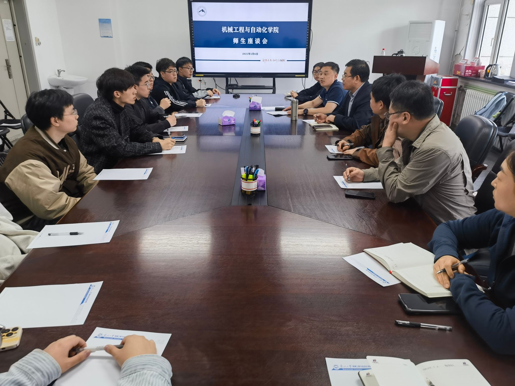 5月6日半夜。学生工做办公室担任人及10余名本研学生代表参会交换。机械工程取从动化学院正在新机械尝试楼206室召开师生座谈会。以“学风扶植月”专项步履为抓手,通过系列勾当持续强化学风扶植成效。取会带领、教师认实记实并对学生集中提出的问题进行回应。郝建山取学生代表环绕学院培育打算、教育讲授和学风扶植等方面进行交换。